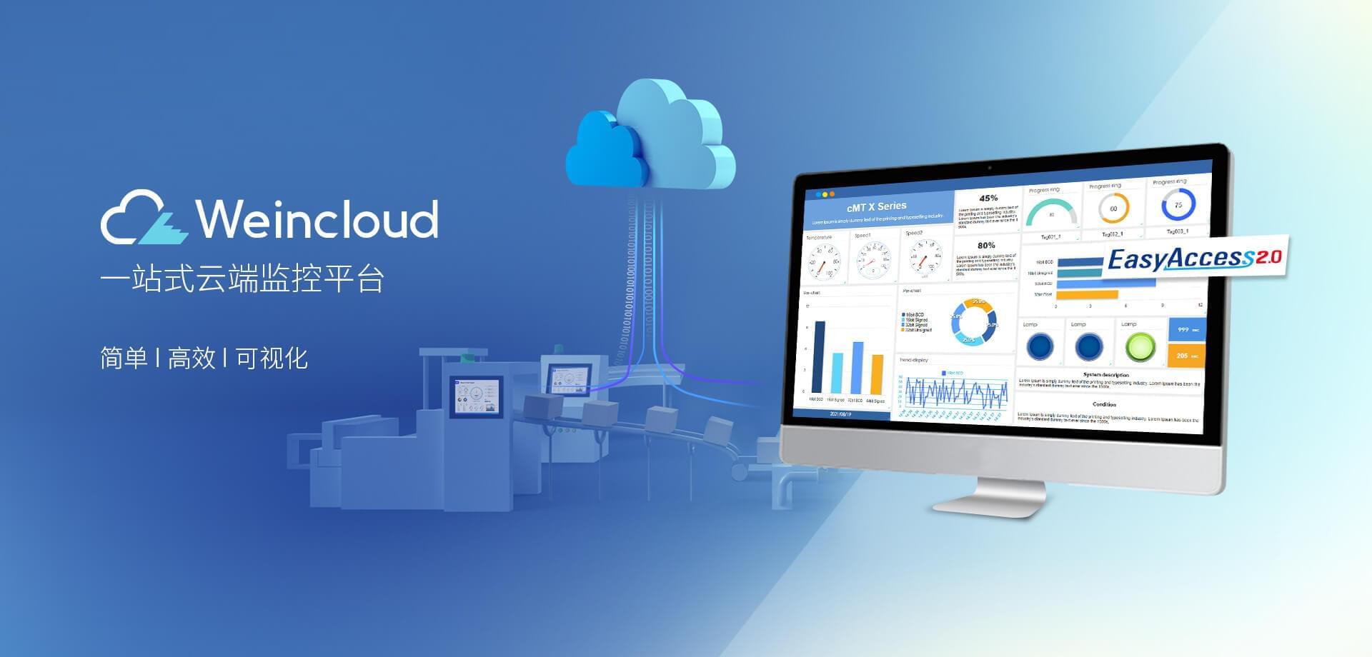 Weincloud 集結(jié)EasyAccess2.0遠(yuǎn)程監(jiān)控服務(wù)及Dashboard云端儀表服務(wù),將設(shè)備資料數(shù)據(jù)上云并以視覺化呈現(xiàn),協(xié)助管理者實(shí)時掌控現(xiàn)場產(chǎn)線狀態(tài)。